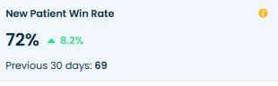 If 51 of 70 new patient opportunities were booked, the New Patient Win Rate is 72%.