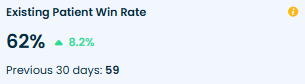 If 53 of 86 opportunities from existing patients were booked, the Existing Patient Win Rate is 62%.