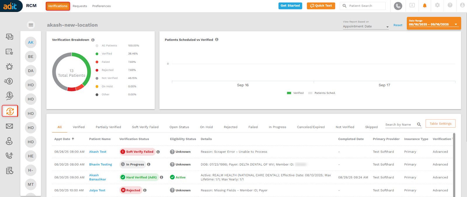 Insurance verifications in Adit are primarily handled by the Adit team, but your practice team can easily check the real-time progress and status of each verification through the RCM module.