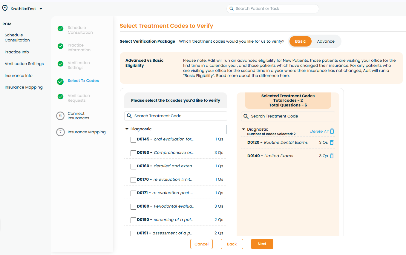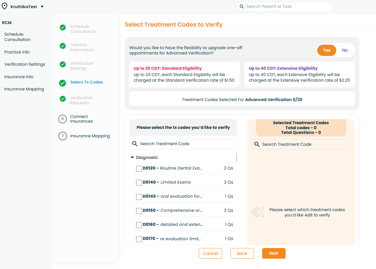 The treatment codes you select will be checked every time a patient undergoes that type of verification.