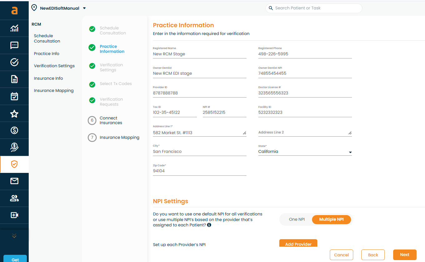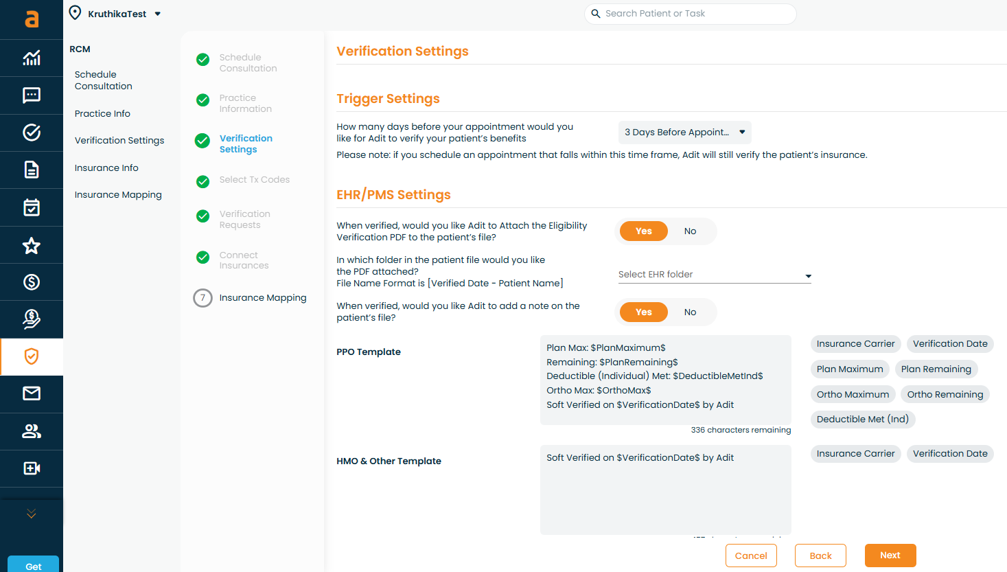 Once your account has been successfully upgraded, you will be prompted to enter basic practice details. This information is used exclusively by the Adit verification team to accurately verify patient insurance coverage.