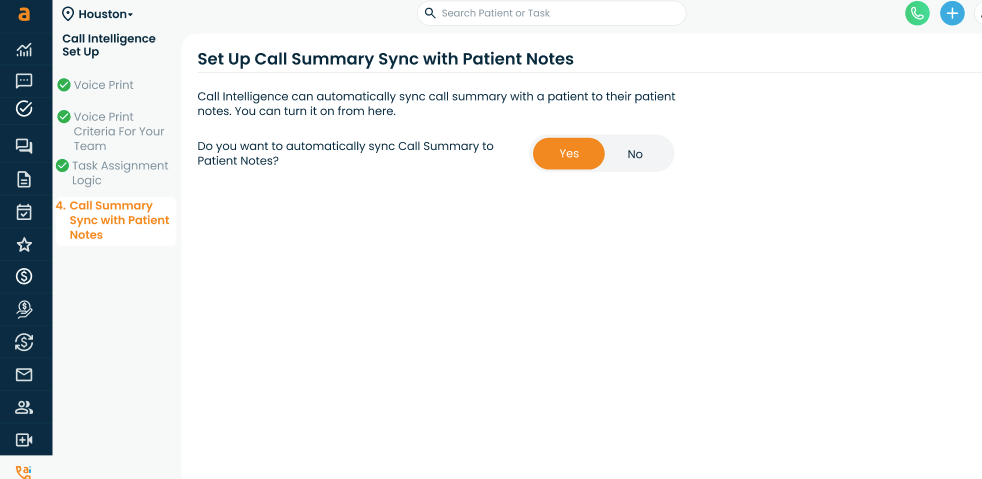 - Go to Call Intelligence → Preferences→ Call Summary sync with Patient Notes.