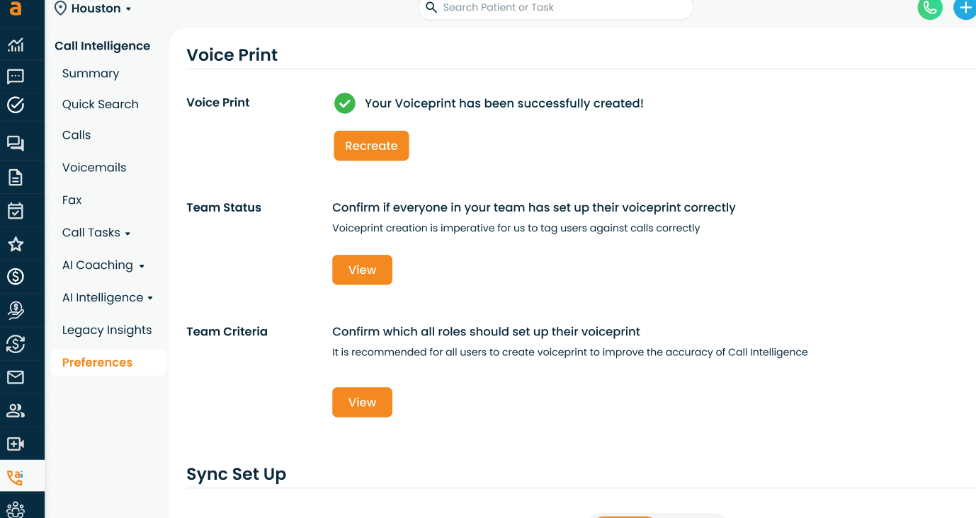 - Or via: Call Intelligence → Preferences → Voice Print (Team Status)