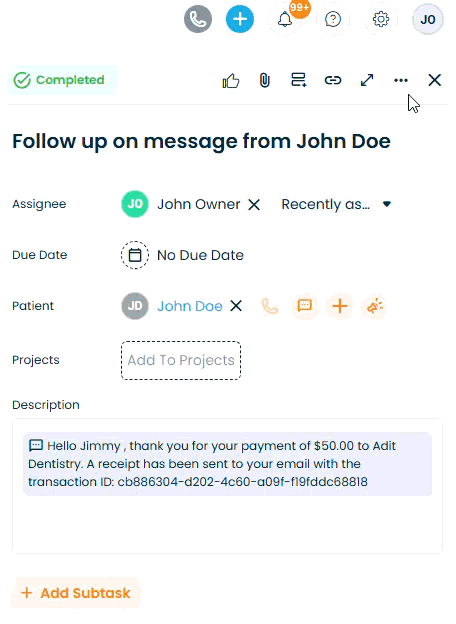 - Click More options: In the task detail view,