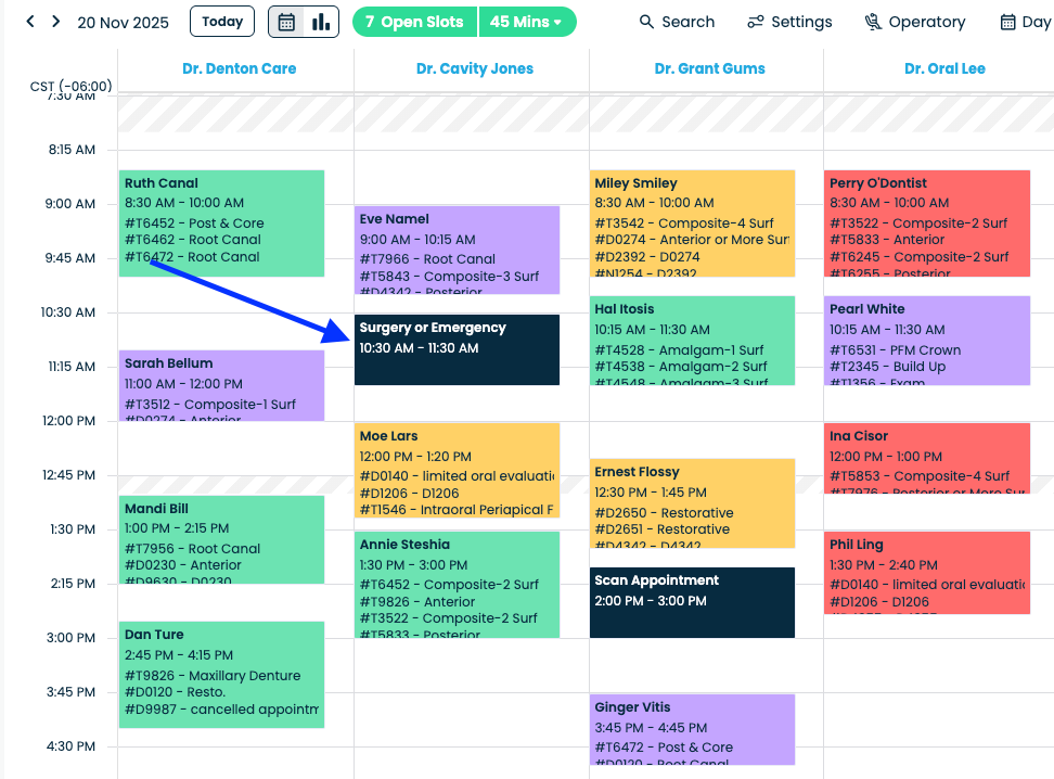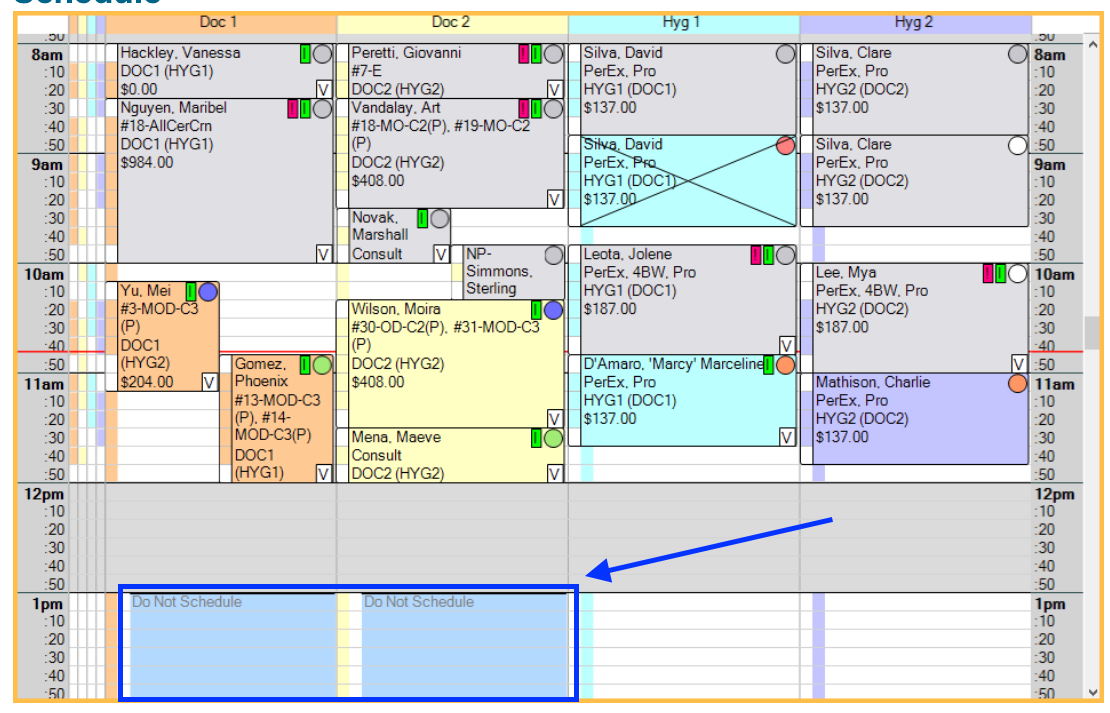 In Adit’s Schedule, Blockouts where Appointments are NOT allowed, will appear in a dark navy color like this: