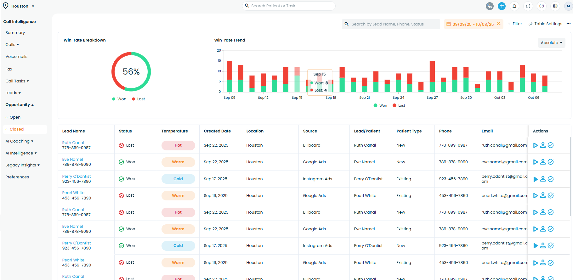 Think of it as your practice’s real-time pipeline of potential appointments. It helps your team follow up efficiently, improve booking performance, and understand why certain opportunities convert while others don’t.