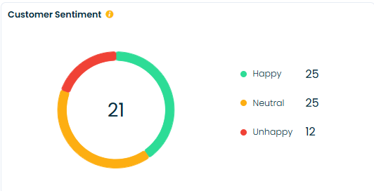 The Customer Sentiment chart shows how your patients felt during calls — Happy, Neutral, or Unhappy. This is automatically analyzed based on tone, pacing, and emotional keywords in the conversation.