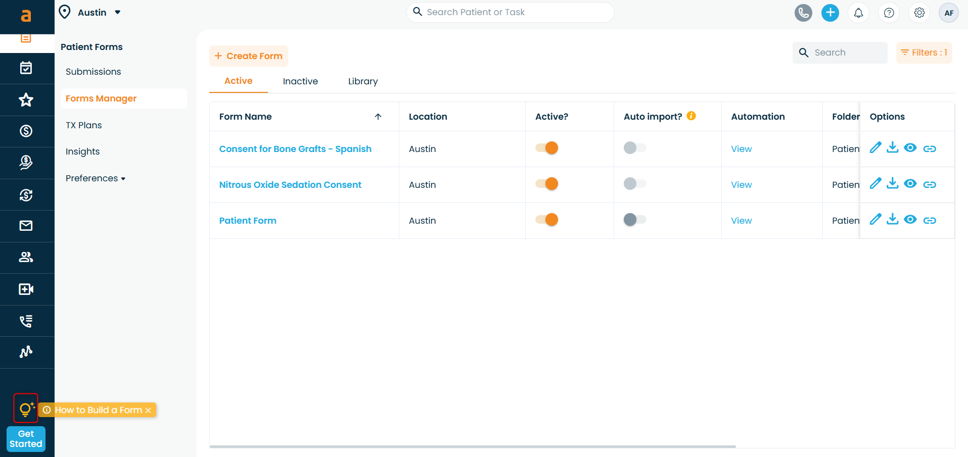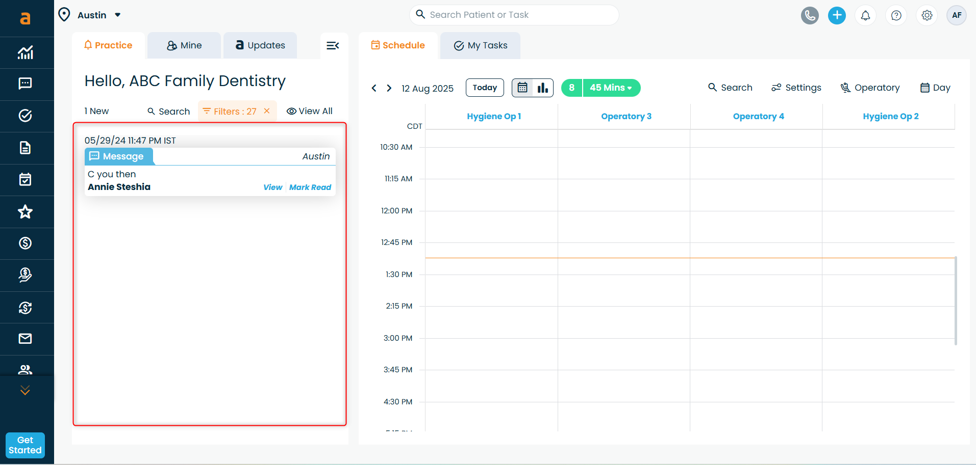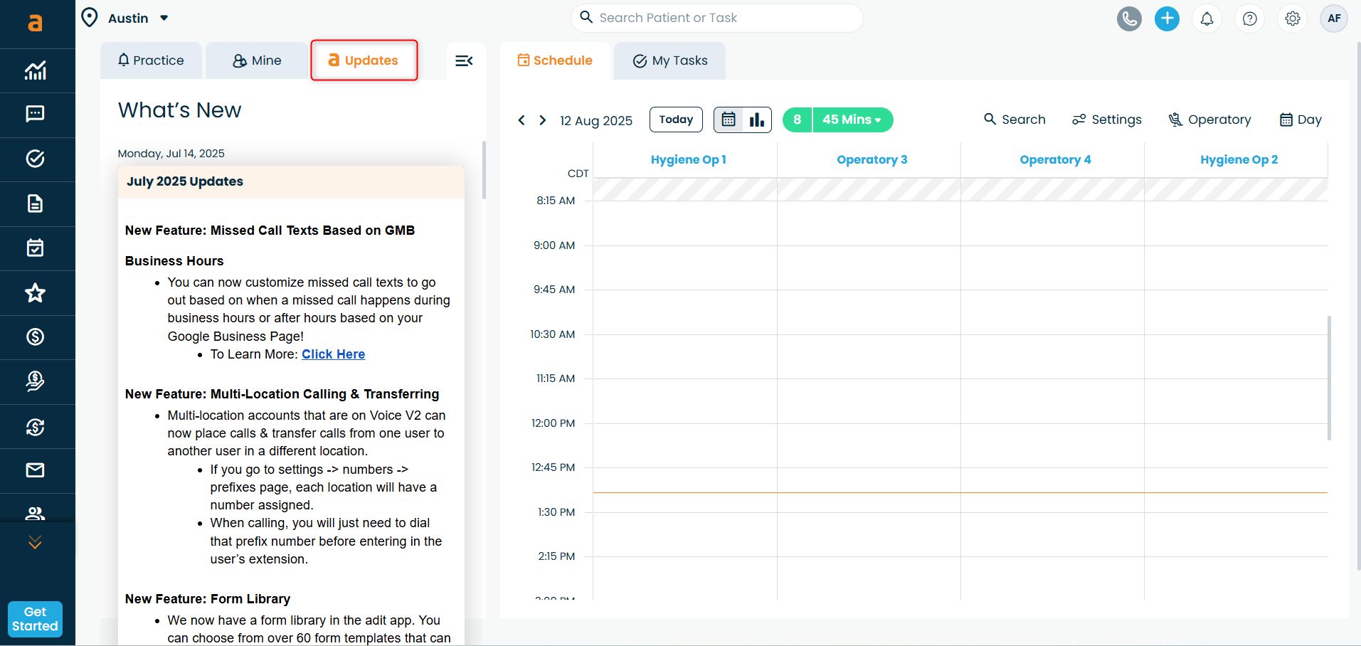 Switch Locations - If your practice has multiple locations, you can switch between them directly