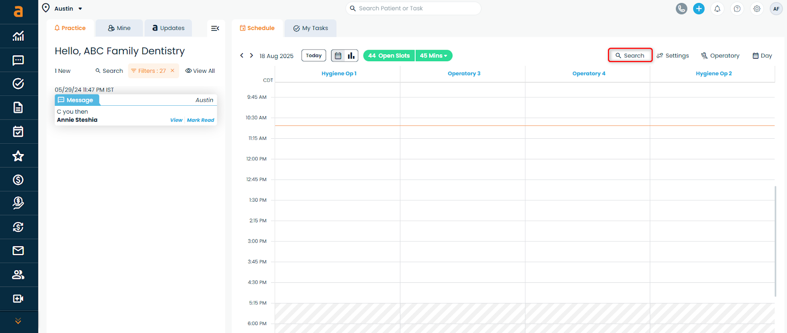 Patient Name - to jump directly to that patient’s appointment.