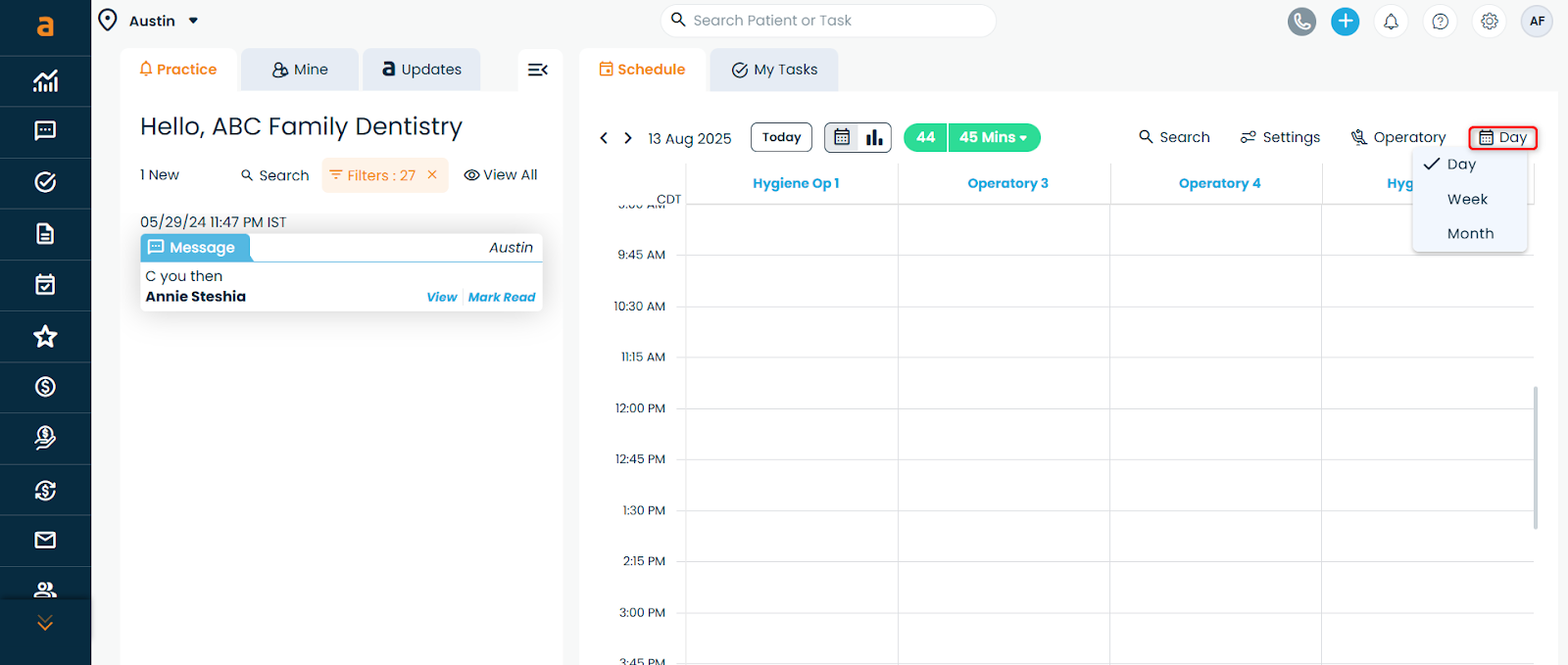 Note: Hidden operatories do not affect scheduling—they’re only removed from view.
