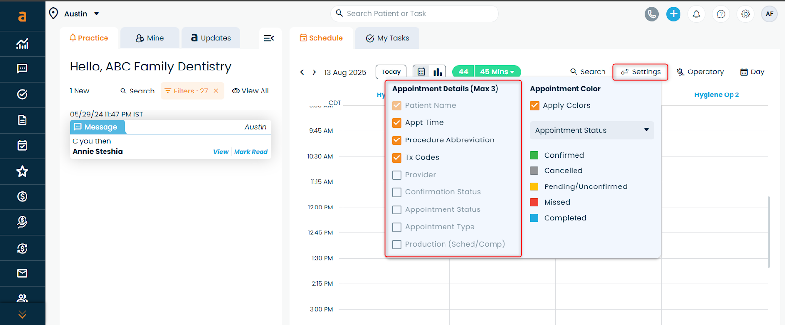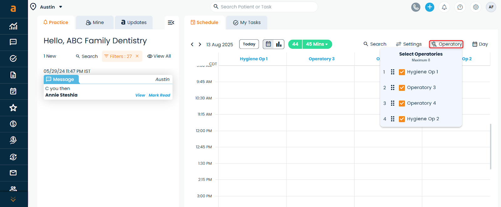Check/Uncheck operatories to show or hide them from your calendar view.