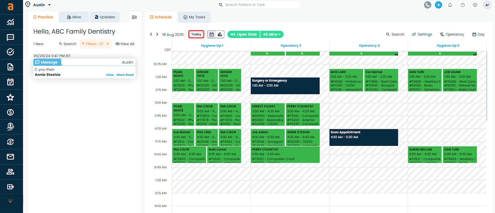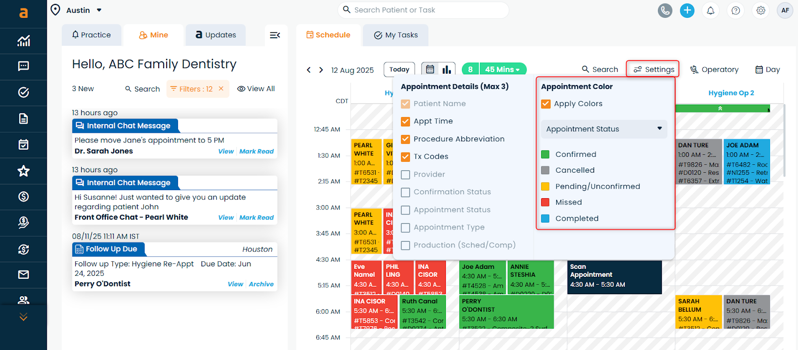 The new Scheduler on your Home Page gives you a real-time, integrated view of your practice’s appointments. You can create, view, and manage your appointments and blockouts all within Adit.